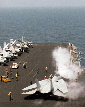 USS Enterprise CVN-65 Flight Deck Operations • Preparing to launch F-14A Tomcat •